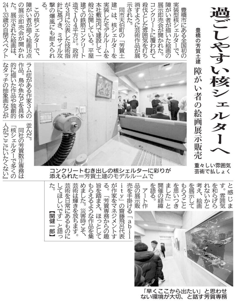 2025年12月6日付の東愛知新聞に、芳賀土建シェルターモデルルームで開催した 障がいのある若者による絵画展示・販売会 の様子が掲載されました。