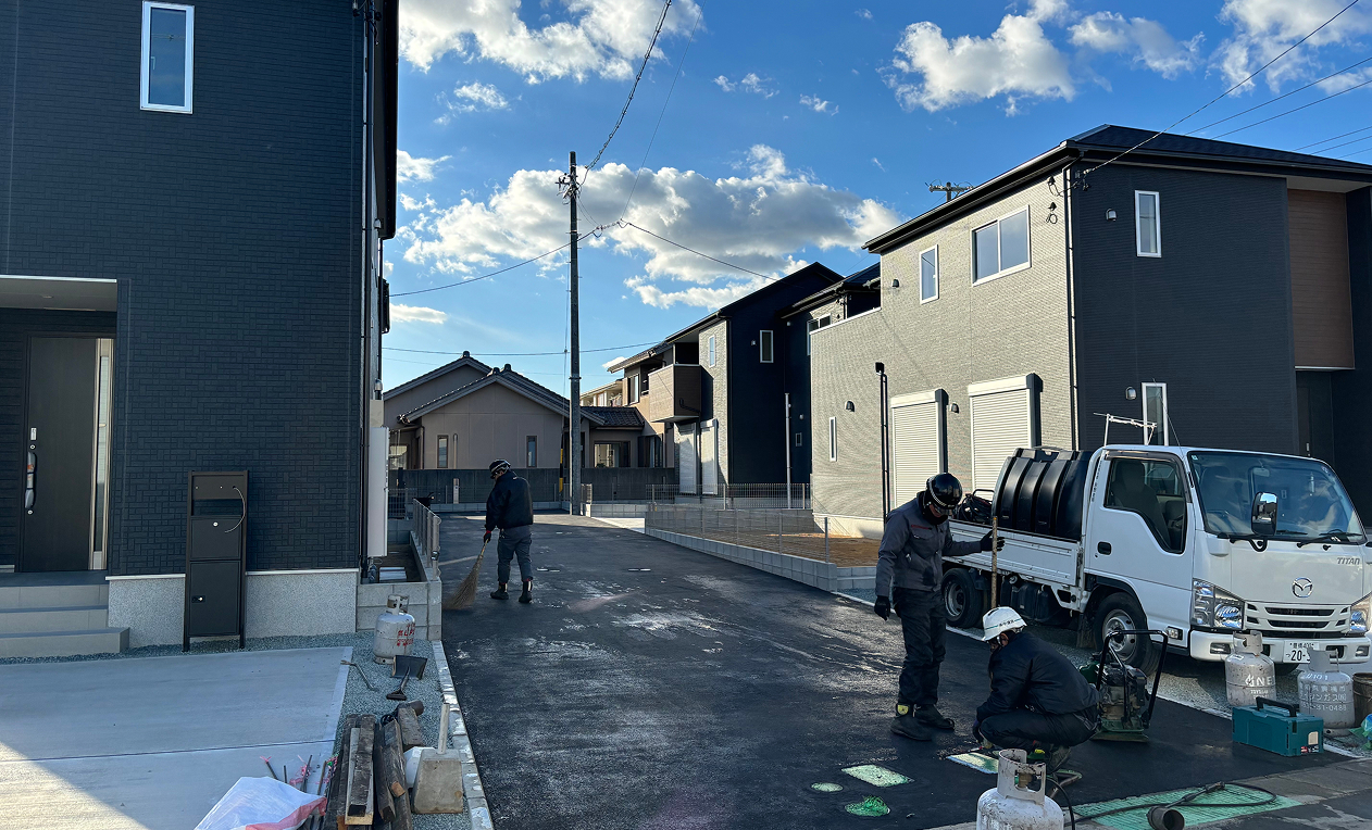 - もちろん対応しています。ひび割れ補修・部分的なアスファルト舗装など、小さな工事でもお気軽にご相談ください。