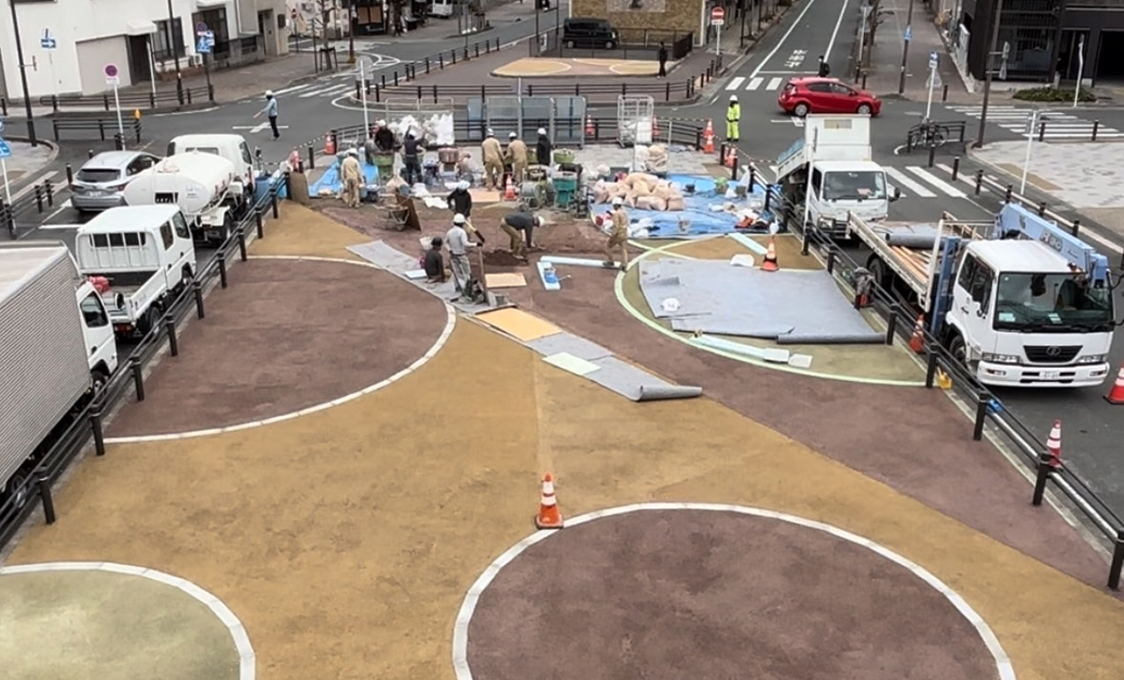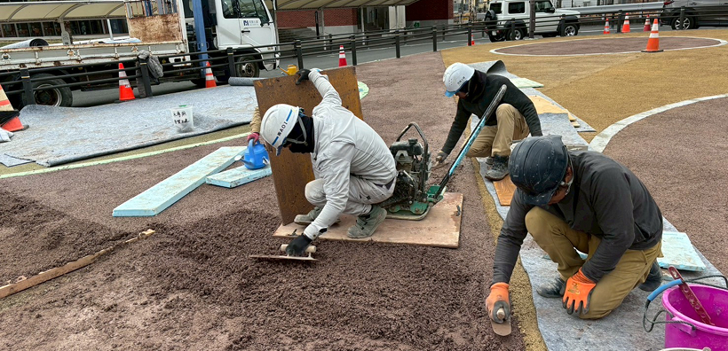 また、従来の舗装に比べて短期間で施工が完了し、限られた工期の現場にも柔軟に対応可能です。